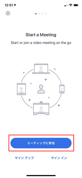 アプリを起動させて「ミーティングに参加」をクリックします。
