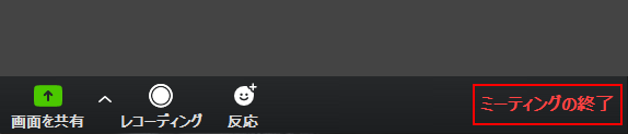 レッスンを終了する場合、画面右下の「ミーティングの終了」をクリックします。