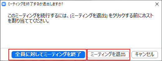ミーティングを終了するか、退出するかを選べます。
