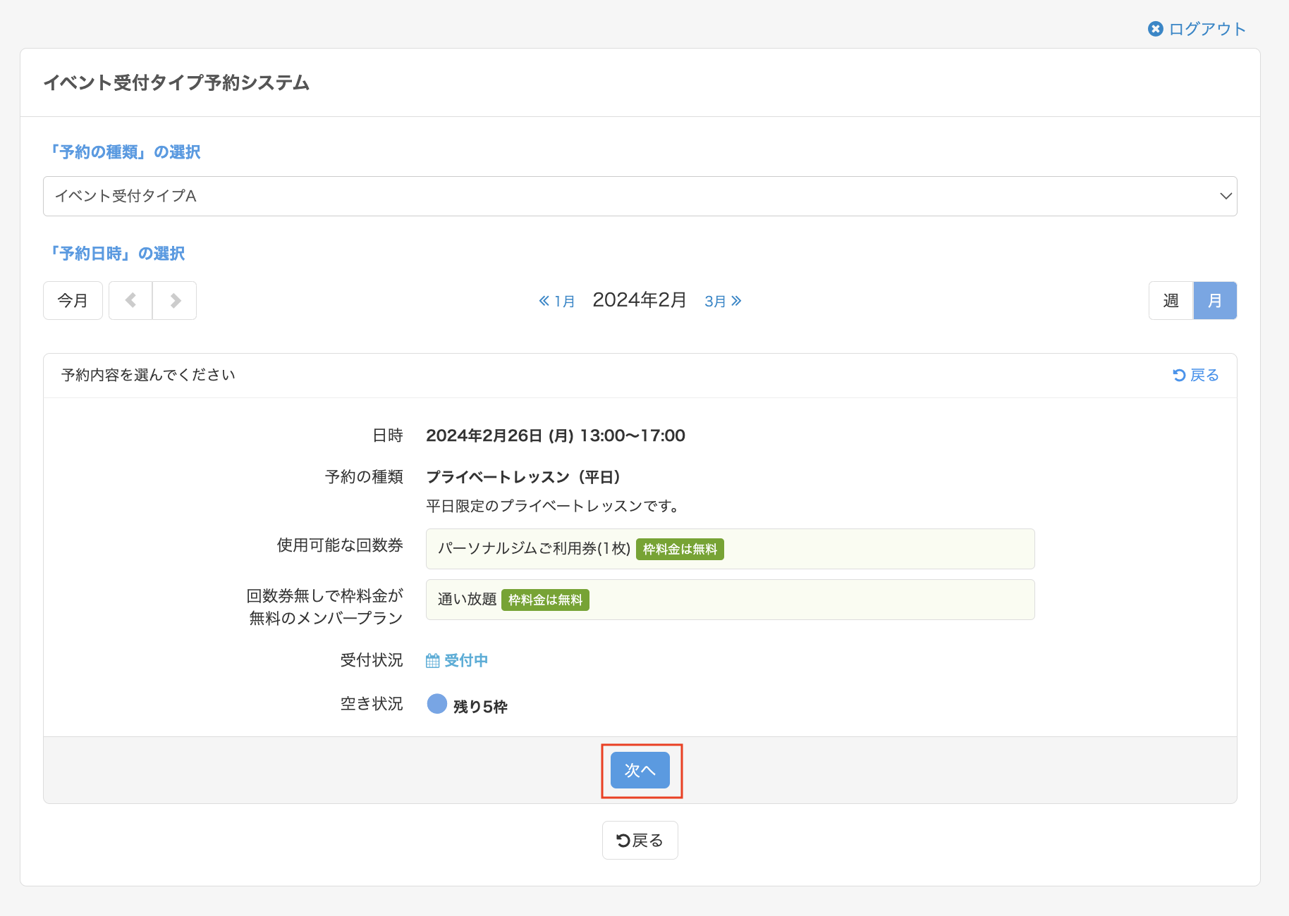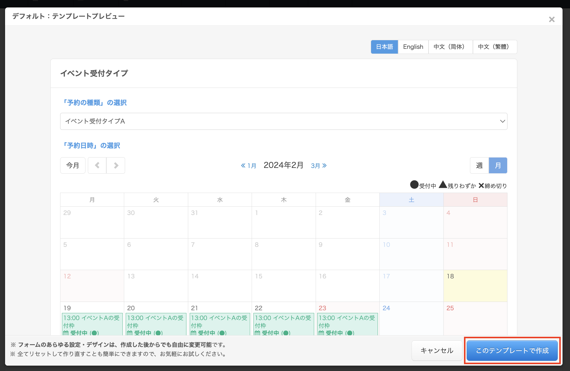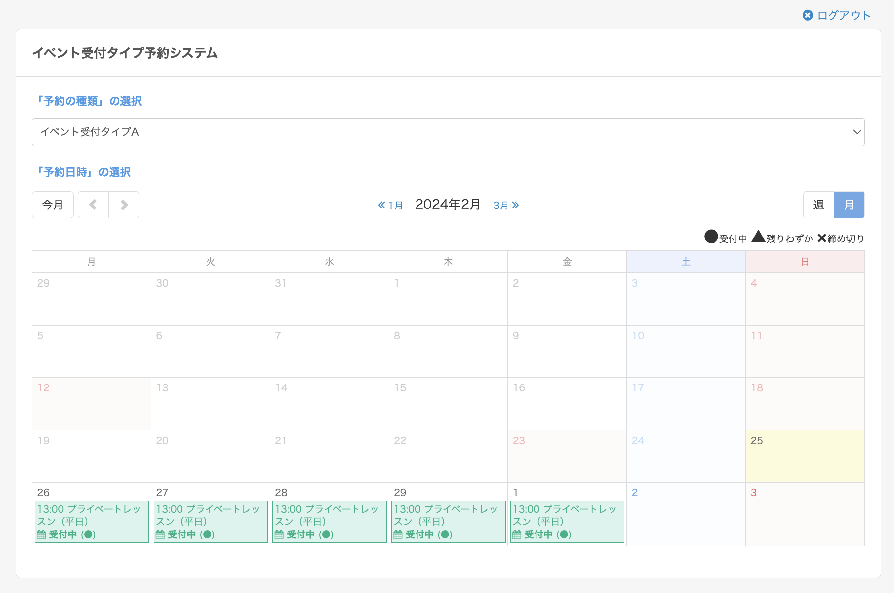 今回は、教室・イベントタイプを例に説明いたします。