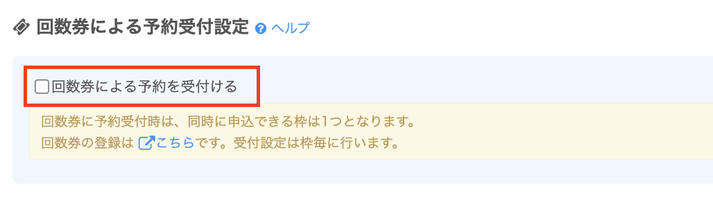 回数券による予約受付設定の画面が表示されるため、チェックを入れます。