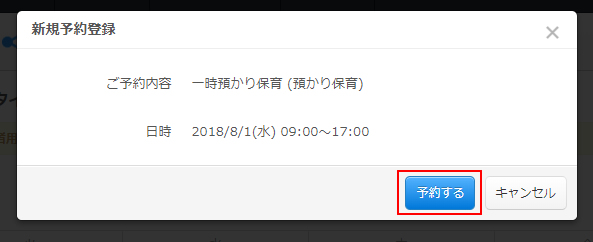 既に予約が入っている場合には、何件の予約が入って後何件予約を入れることが出来るかメッセージが表示されます。