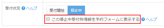 「この停止中受付枠情報を予約フォームに表示する」にチェックをいれます。