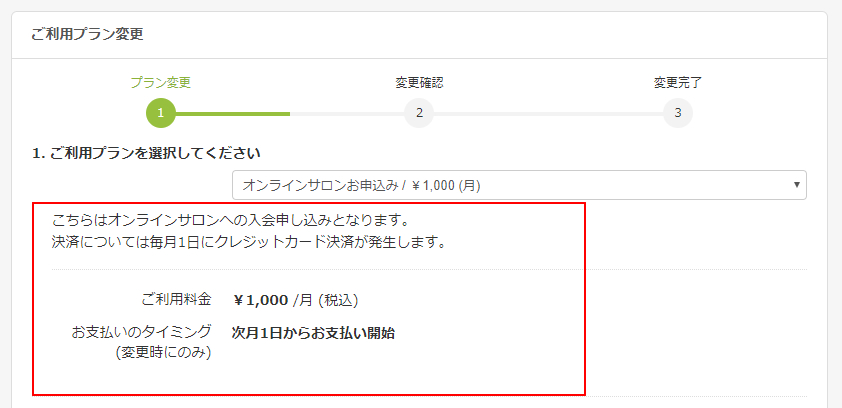 (2).月会費の料金を設定されたプランを用意して、メンバーページから申込・購入出来るようにします。
