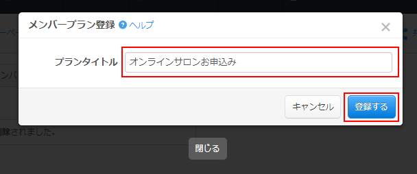 メンバープラン登録画面よりプランのタイトルを入力し、登録します。