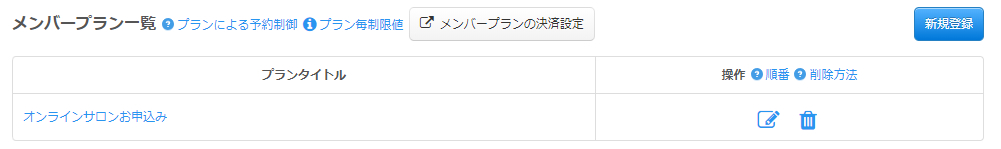 メンバープラン一覧に登録したプランが表示されます。