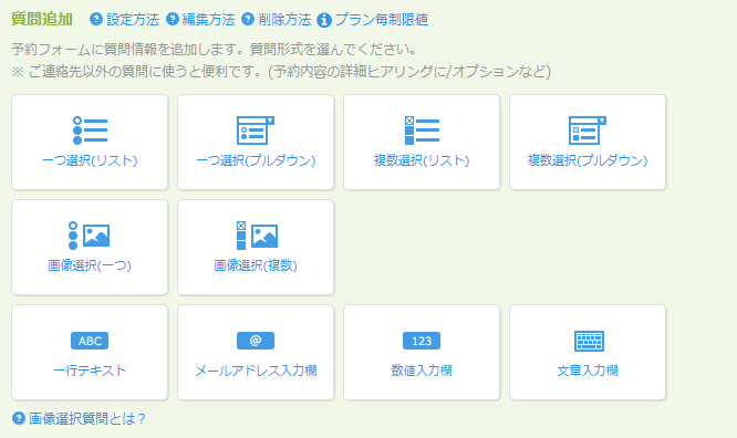 また、予約システムにはオリジナルの質問フォームの設置も可能ですので、