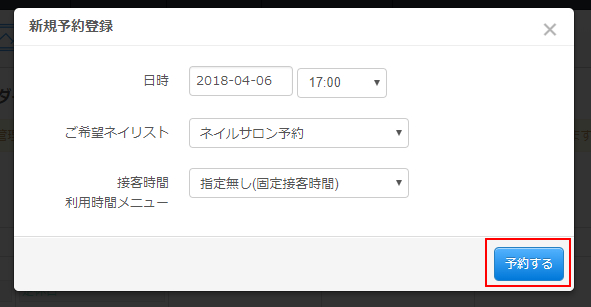 利用時間メニューを使用して、コースメニューを選んでもらう設定方法は次の項「ネイルサロンのコースメニューを設定する」にてご案内します。