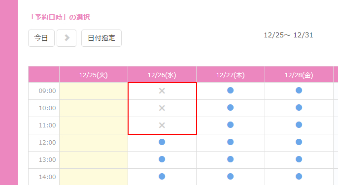 (1).何曜日の何時から何時まで予約を受付するかを「受付時間設定」で設定します