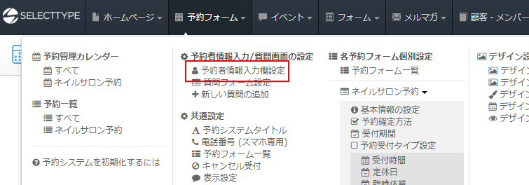 ページ上部「予約フォーム」の「予約者情報入力設定」をクリックします。