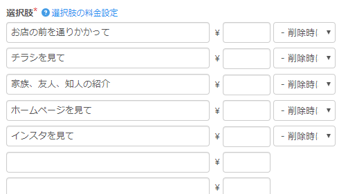 ここでは選択式の質問フォームを使って、お店を知ったきっかけアンケートをヒアリングする質問を作成してみましょう。