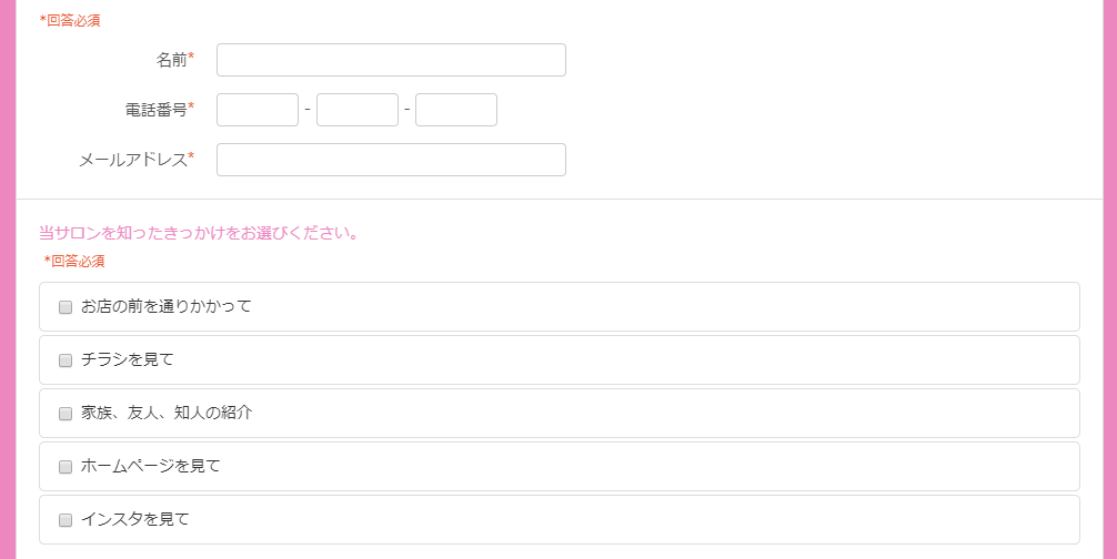 ご予約者様の氏名や連絡先など予約受付時に必要な情報をヒアリングするための入力フォーム作成していきます。