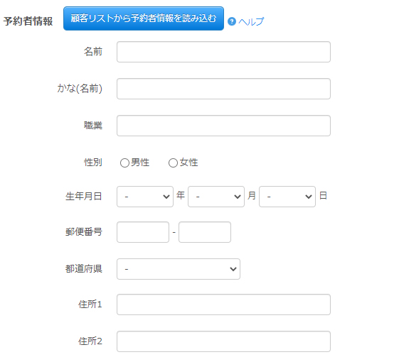 ご予約される方が2回目以降で顧客リストに情報が登録されている場合には