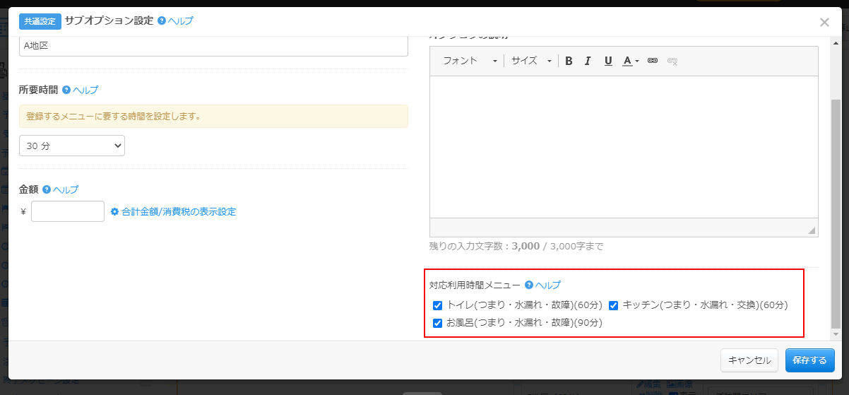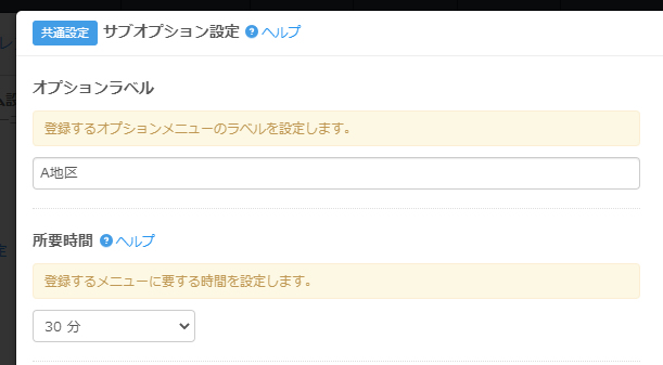 サブオプション毎に対応する利用時間メニューを選ぶこともできますので、特定のメニューを指定時のみ