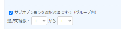 グループ内のサブオプション指定を必須にしたり、選択可能数を制御することも可能です。