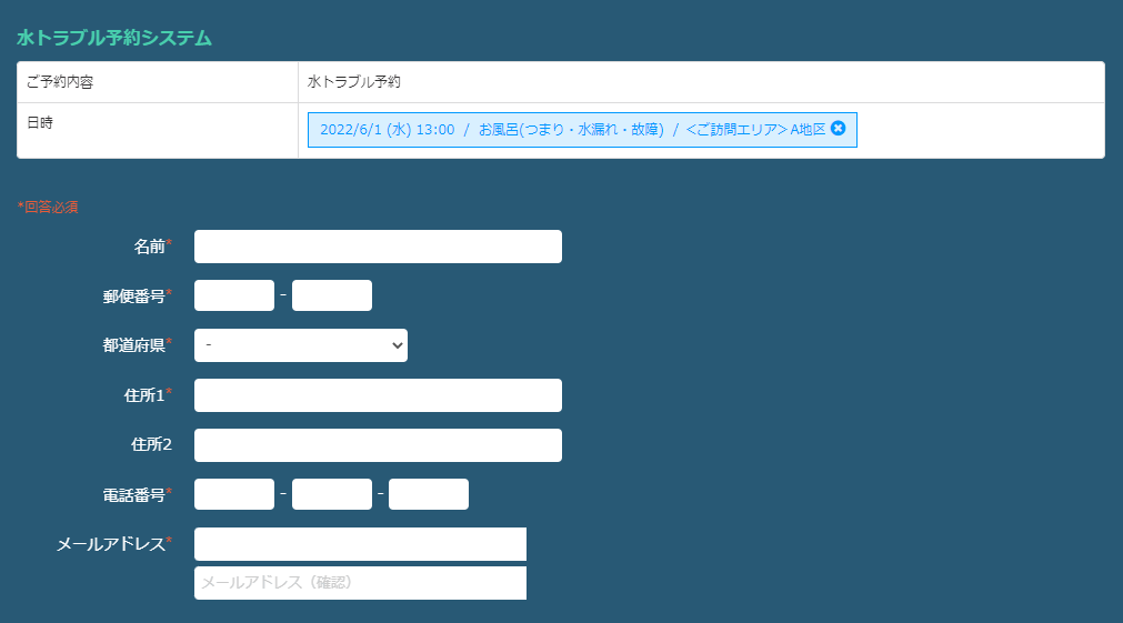 ご予約受付をして実際にご訪問の際に必要な情報をヒアリングできるように該当のフォームを設置しましょう。