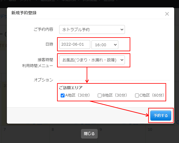 新規予約登録画面が表示されます。