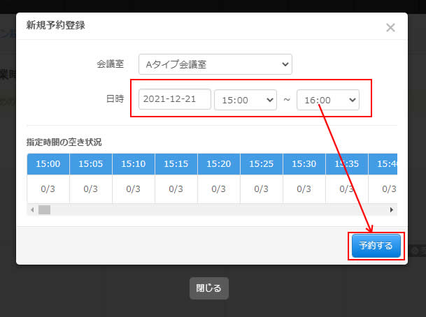 例). 以下のように細かく利用の開始/終了時刻を指定して予約が出来ます。