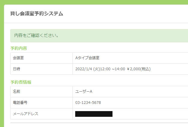 登録が完了すると、登録した予約情報の詳細画面が表示されます。