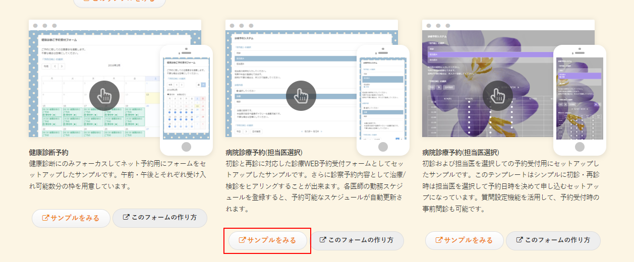テンプレートはこちらの病院向けサンプルフォームを使用します。