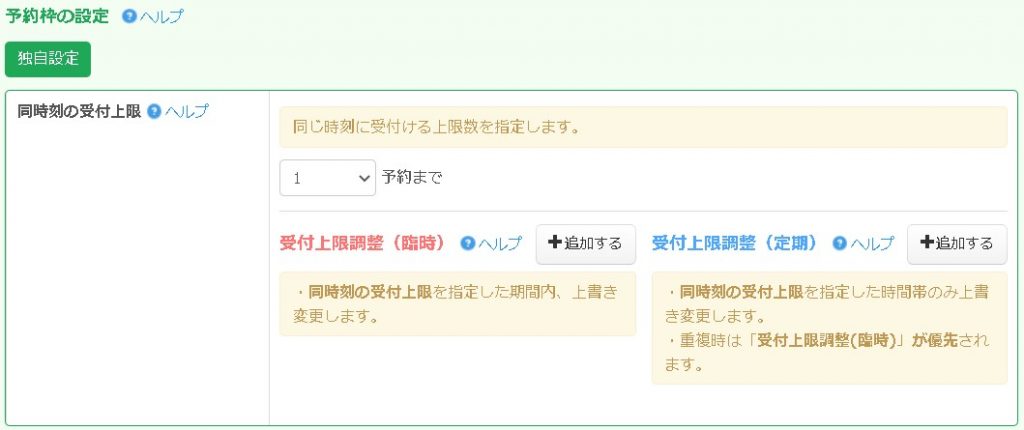 同時刻の受付上限の設定方法はこちらのヘルプページをご参照ください。