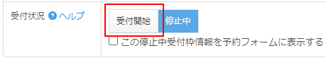 デフォルトでは受付停止の状態ですので、作成が完了したら受付を開始しましょう。
