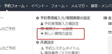 ヘッダーメニュー「予約フォーム」より「新しい質問の追加」をクリックします。