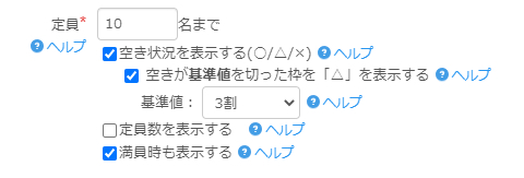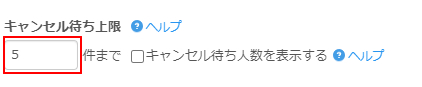 「キャンセル待ち上限」…キャンセル待ちで受付けする上限数を設定します。