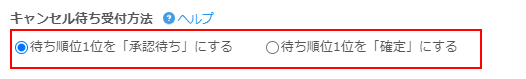 「キャンセル待ち受付方法」…キャンセルがでてキャンセル待ちから繰り上がる際の予約ステータスを「承認待ち」にするか