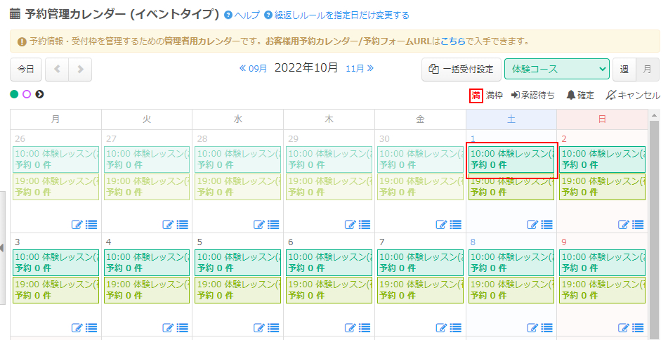 予約管理用のカレンダーが表示されます。