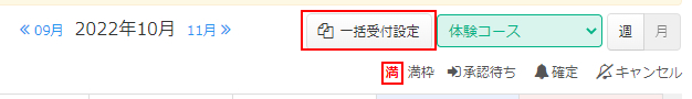 予約管理カレンダーの画面右上の「一括受付設定」ボタンをクリックします。