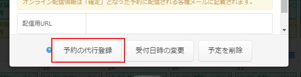 「予約の代行登録」ボタンをクリックします。