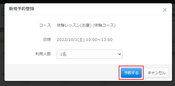 新規予約登録画面が表示されます。