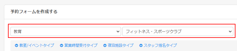 予約システムの紹介ページからもテンプレートを選んで作成できます。