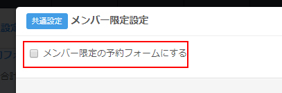 上部メニュー「予約フォーム」⇒「共通設定/メンバー限定設定」をクリックします