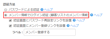 メンバー情報でログイン認証 (顧客リストのメンバー情報)を選択します