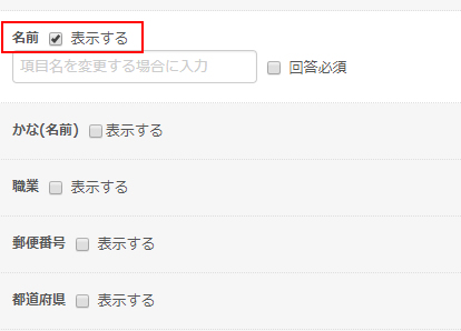 必要な項目名にチェックをいれ、使わない項目はチェックを外すだけでお客様情報を入力するフォームが出来上がります。