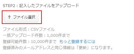 記入したファイルを顧客リスト登録/更新からアップロードします。