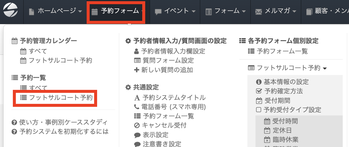 今回はフットサルコートの予約システムを例としてセットアップ方法をご紹介します。