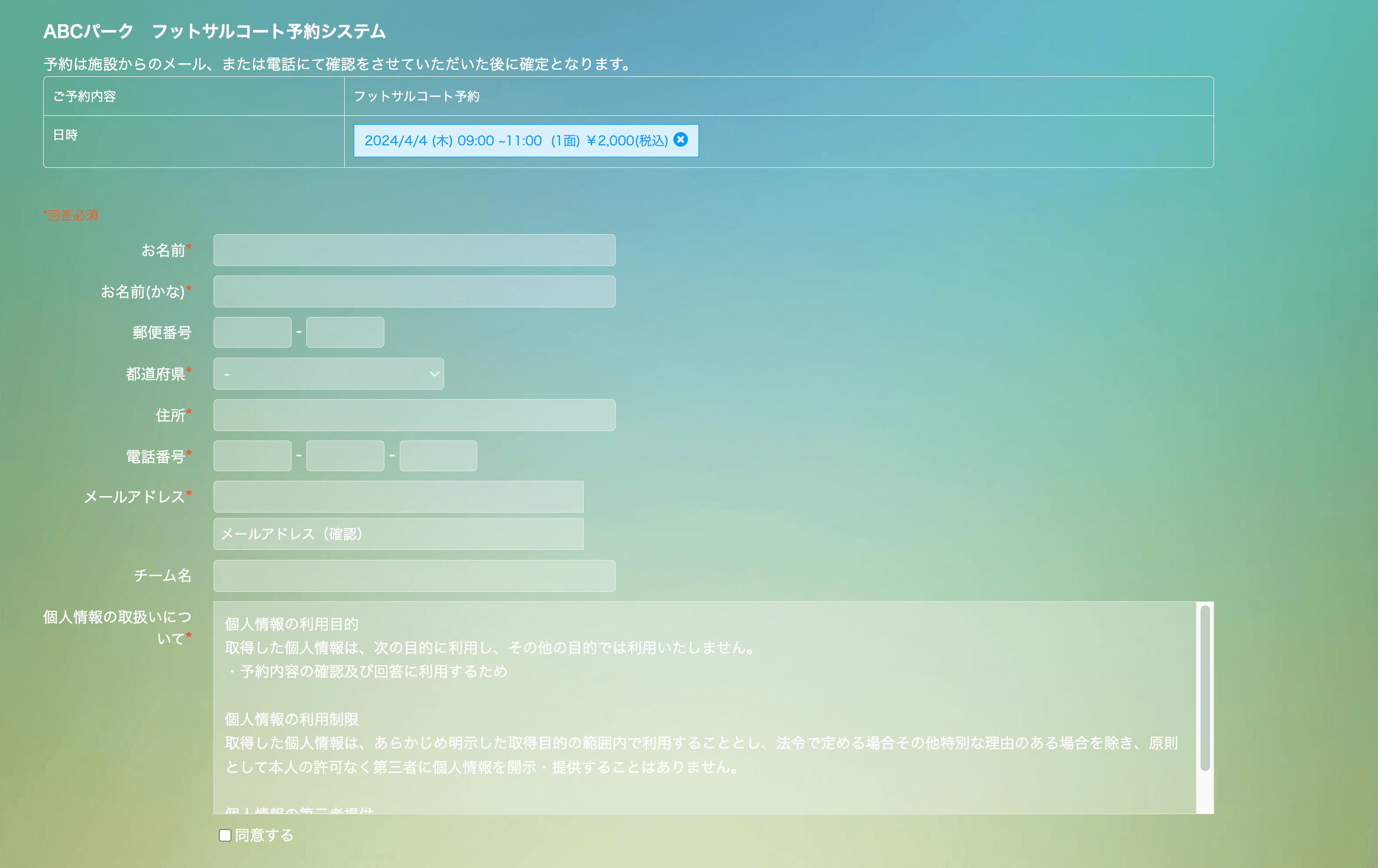 「ABCパーク フットサルコート予約システム」のように、わかりやすい名称に変更可能です。