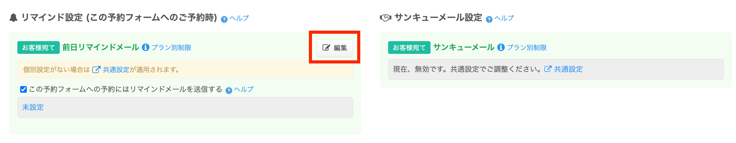 リマインド設定欄の「編集」をクリックすると設定画面が表示されます。