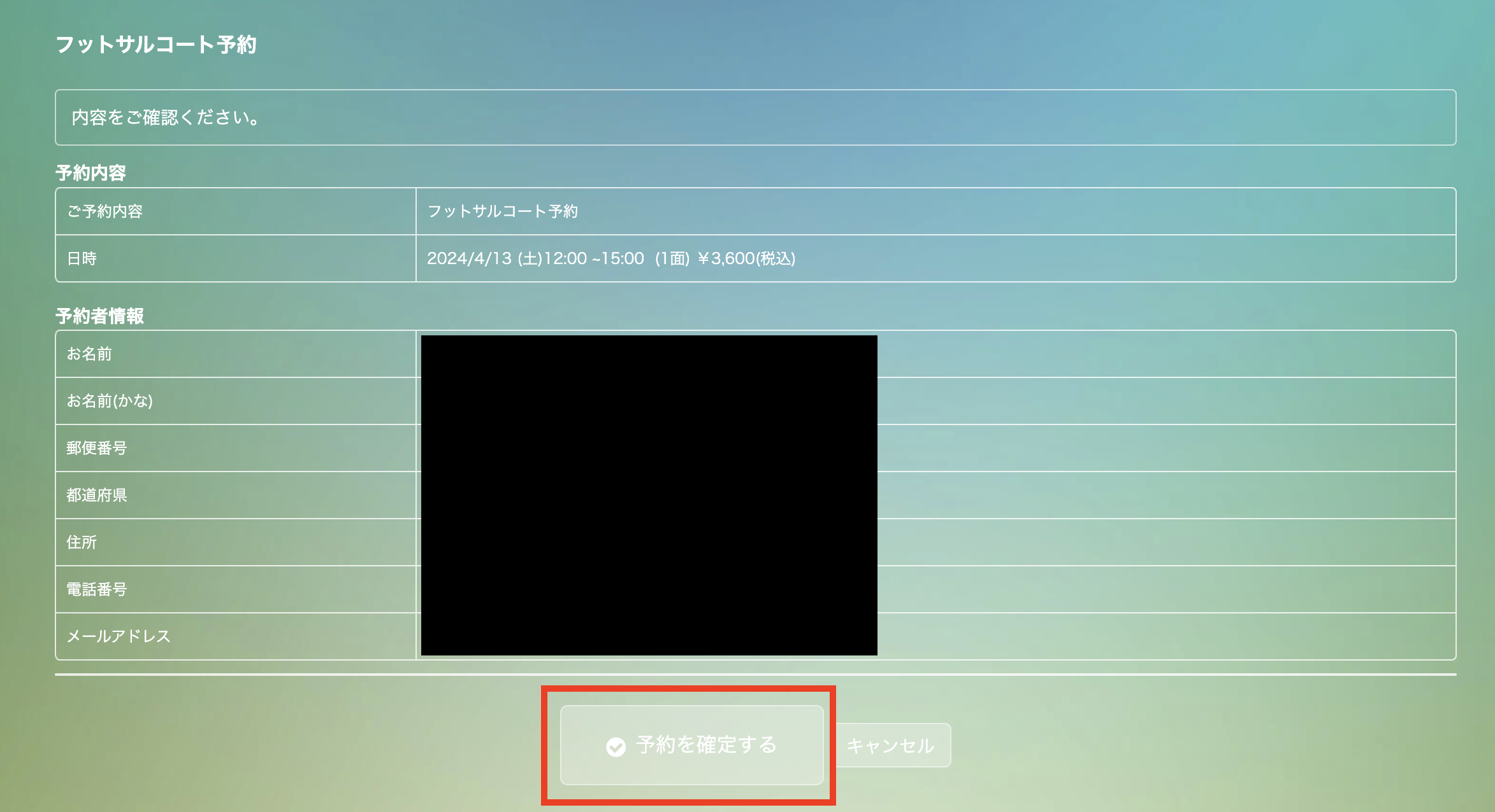 入力内容を確認し「予約を確定する」をクリックします。