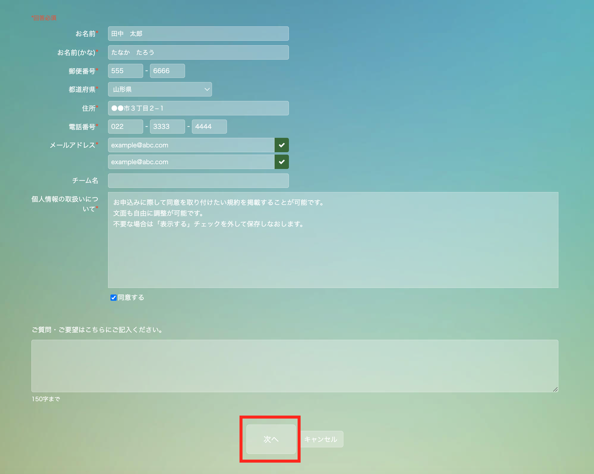 必要事項を入力し、「次へ」をクリックします。