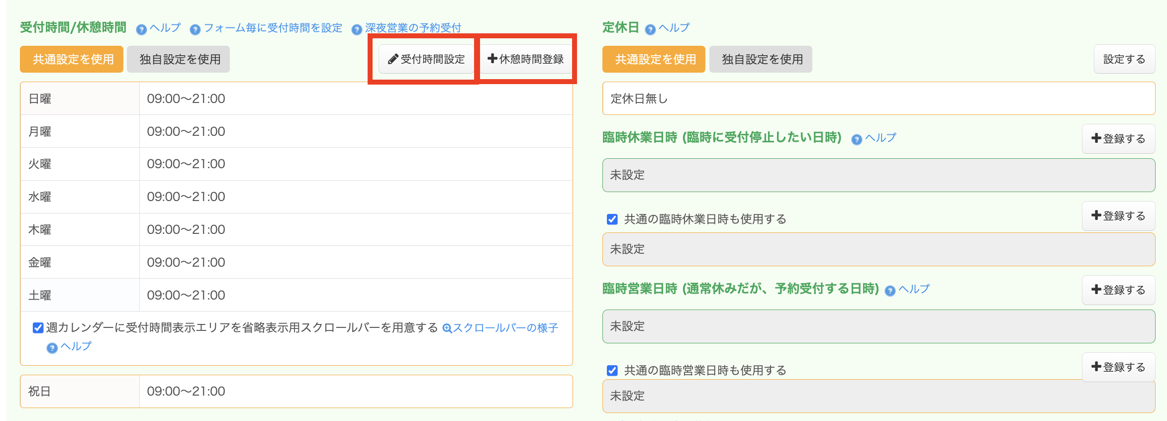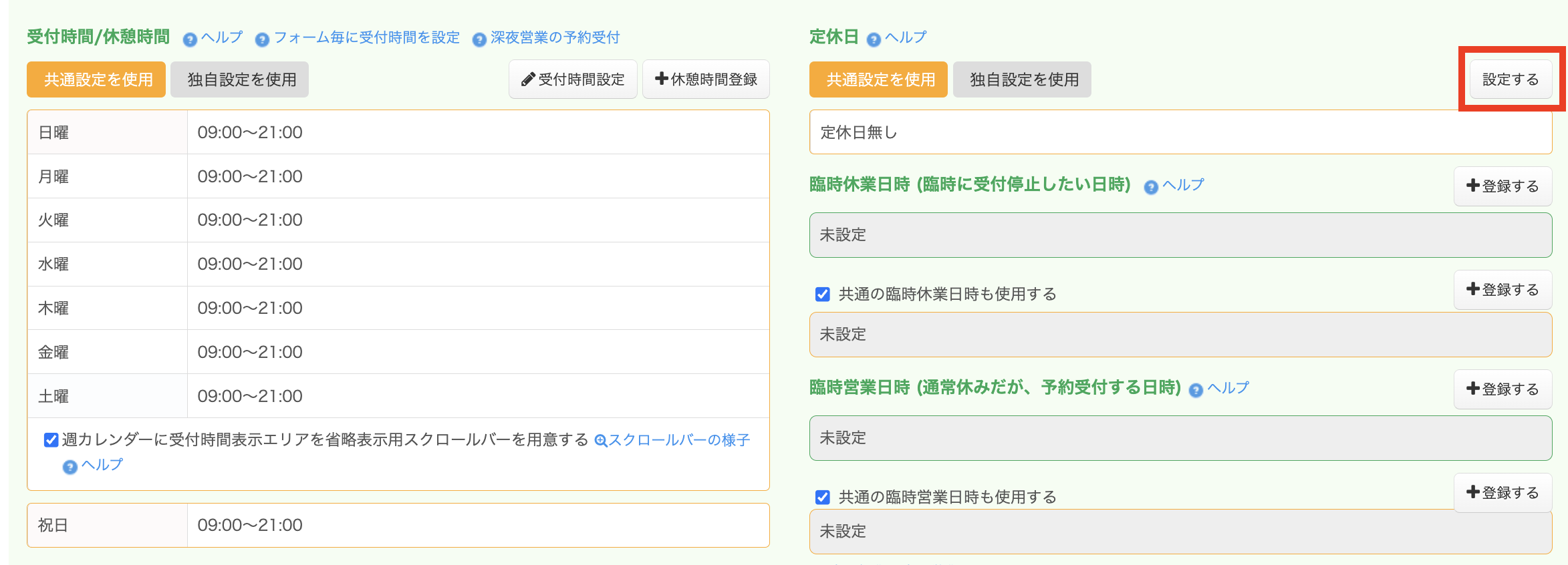 受付時間の設定/営業時間タイプ予約システム
