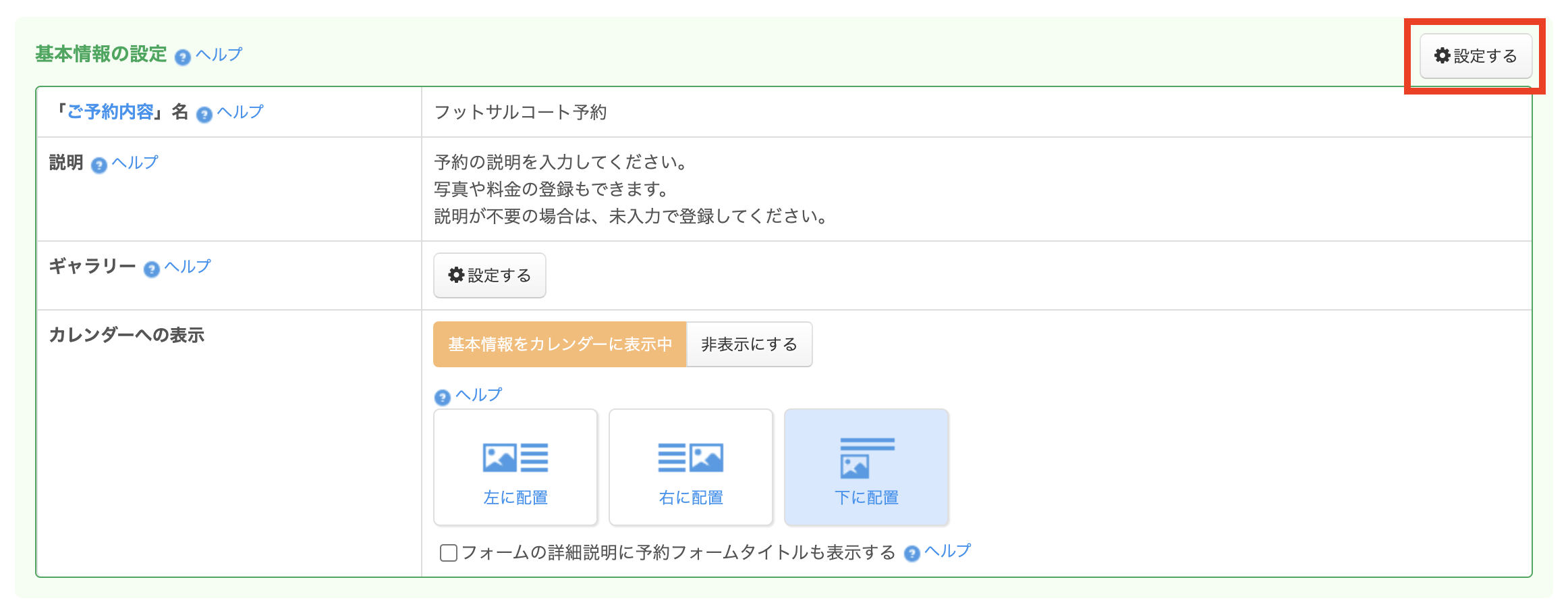予約フォームにお店の紹介、サービス内容の説明や画像ギャラリーを掲載する/カレンダーへの表示設定