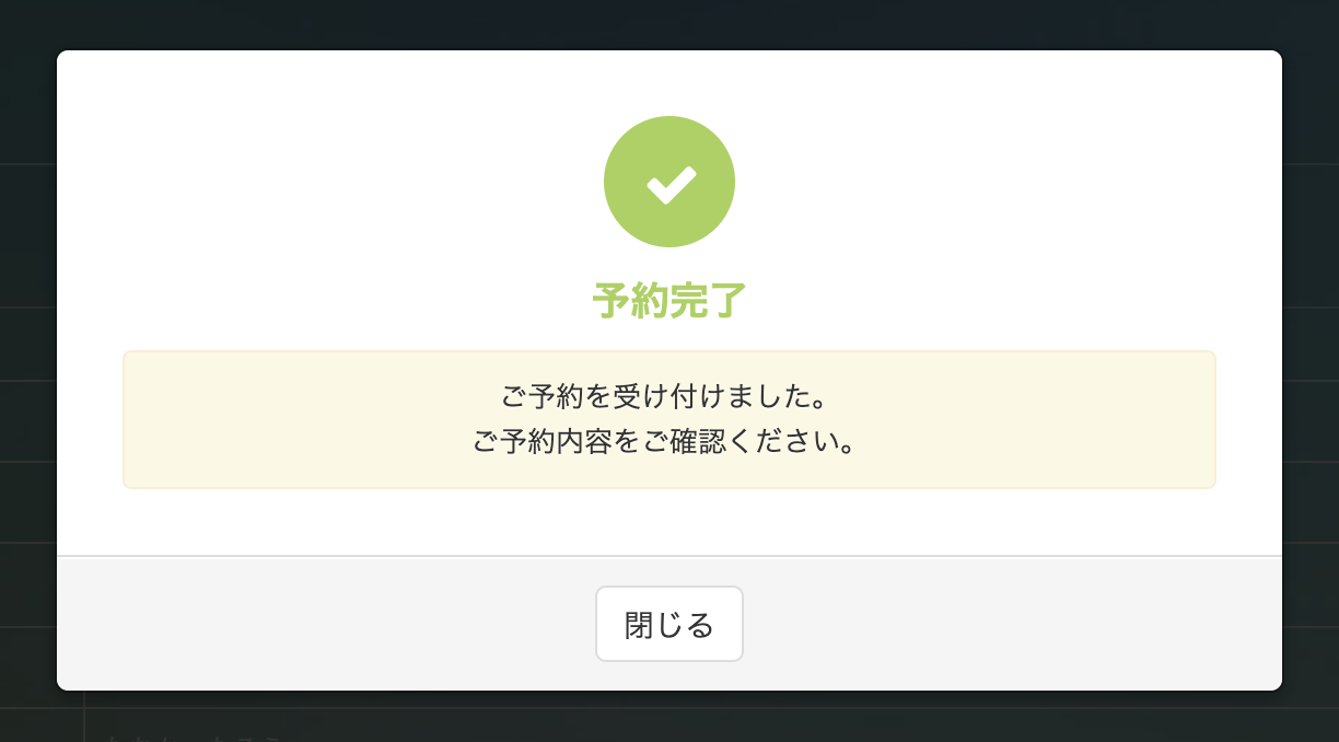 予約完了メッセージが表示されます。