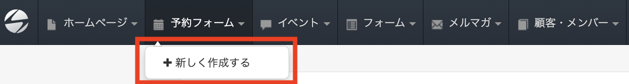 今回の記事で紹介するフットサルコート予約システムのテンプレートは、マイページからも選択できます。ヘッダーの「予約フォーム」をクリックし、「新しく作成する」をクリックします。