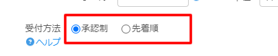 受付方法は「承認制(管理者の承認を必要とする受付方法)」「先着順(受付と同時に予約確定)」のどちらかを指定します。