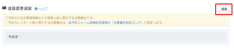 注意書き設定エリアが表示されるので「編集」ボタンをクリックします。