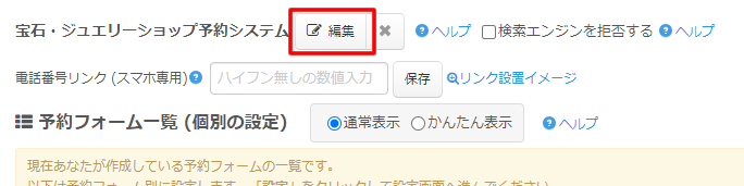 予約システムタイトルの設定エリアが表示されますので「編集」をクリックします。